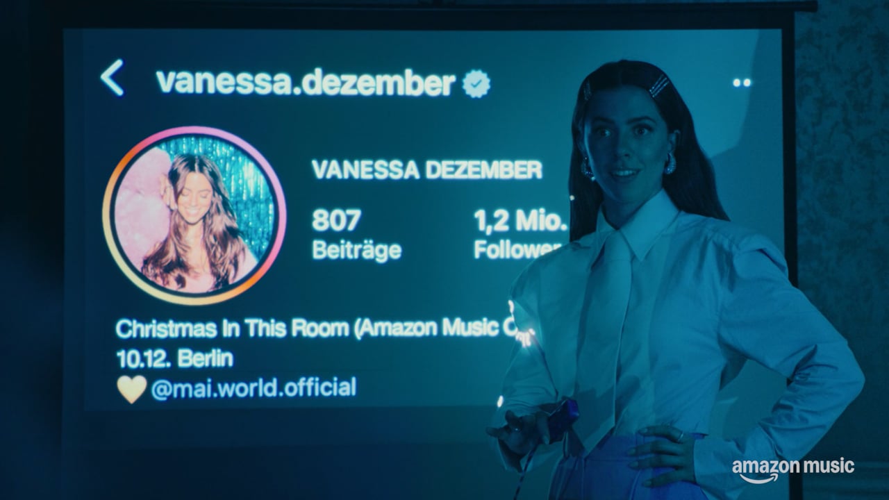 Für „Christmas in this Room“ wurde Vanessa Mai zu Vanessa Dezember. Im 2-minütigen Spot überzeugt sie Gregor Hägele als Weihnachtsmann, Laura Larsson als Engel und sogar unseren Lebkuchenmann davon, dass ihr Dezember dieses Jahr perfekt wird. Den passenden Weihnachtssong hat sie selbst komponiert. Bei den Gesangsübungen unterstützt sie Leony. Chiara Calisto liefert die Dance-Performance, und diehuepsche sowie die Elevator Boys geben die nötigen Weihnachtstipps. Selbst Amazon Alexa ist sich sicher: Die Queen of Christmas ist Vanessa Dezember. Produziert haben wir den Hauptspot (2 Minuten), Social Assets für Instagram und TikTok, DOOH-Cutdowns und ein Fotoset für Plattencover, Anzeigen und Merchandise. Ein Projekt, das den Dezember einfach besser macht. Amazon Music Executive Producer: Dilara Balantekin Project Management Support: Rieke Zawadzki Social Media Lead: Philippe Hemmerling Content Programming Lead: Sophie Mayr Thanks to: Eilar Sotoudi Namin, Annina Mitterreiter, Sherin Wilke & Simone Wolf Production Creative Agency: We Are Social Deutschland GmbH Creative Director: Stephanie Eser & Tobias Kremers Account Director: Julia Fröde & Anatol Vetters Production company: HEY NA! GmbH @heyna.berlin Executive Producer: Björn Mager Head of Production: Florian Boesel Producer: Anna Krenkel Hand: Jula Herold Hand: Felix Stepp Regie: Annegret von Feiertag DOP: Greta Conte 1st AC: Emrah Celik 2nd AC: Mina Büker B-Cam Operator: Hannah Schwaiger 1st AC: Ksenia Gordiash Data Wrangler: Nina Pfenning Gaffer: Sandra Glaser Beleuchter: Ruben Cosmo Fleischer Beleuchter: Konrad von Wittich Styling: Sarah Karsten Styling Assistenz: Ylenia Gortana Hair & Make-up: Ben Meyer Hair & Make-up: Kerstin Petter Hair & Make-up Assistenz: Ester Nyakato Rüppel Production Design: Juliane Hoffrecht Production Design Assistenz: Christina Rix Baubühne: Freia v. Schwichow Ton: Michael Schmidt Fotograf: Viktor Strasse Cutter & Sound Design: Sven Arnig Color Grading: Maximilian Pauly VFX: Paul Janssen BTS: Dustyn Alt Catering: Sunny Burrito