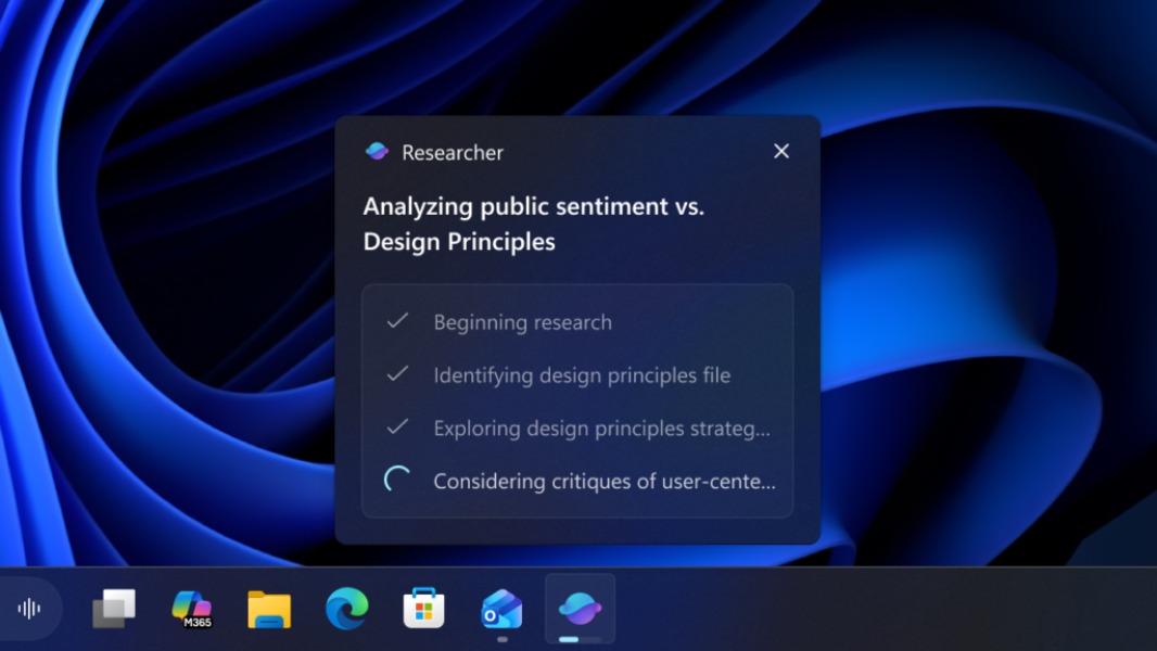 Insiders on the Dev and Beta Channels will soon be able to test how AI agents will appear on the taskbar, starting with Microsoft's Researcher agent.